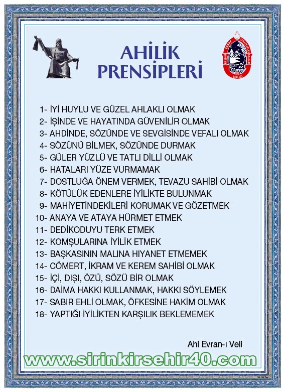 “O halde toplumun büyük bir kesiminin sanata yönlendirilmesi ve her birinin belli bir sanat dalıyla meşgul olması gerekir ki toplumun ihtiyacı görülsün. Ahi Evran’ın kurduğu Ahilik Teşkilatı’nın eğitim anlayışı bu temel görüşe dayanmaktadır. Devlete düşen görev bu görüşe destek vererek halkın eğitilmesine ve yönlendirilmesine yardımcı olmaktır. Ahi Evran eserinde belirttiği eğitim ve öğretim konusundaki tüm önerilerini kendisi Ahi birliklerinde uygulamıştır.” (ahilik.net)